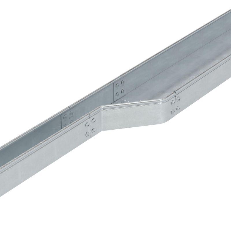 Ширина его составляет 300 мм в узкой части и 400 мм – в широкой. Максимальная степень пыле- и влагозащиты – IP 44 (при использовании вместе с крышкой). Высота - 50 мм. Исполнение – "сталь, оцинкованная по методу Сендзимира". В состав комплектного аксессуара входят необходимые крепежные элементы и соединительные пластины.