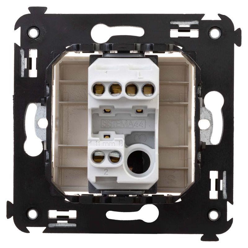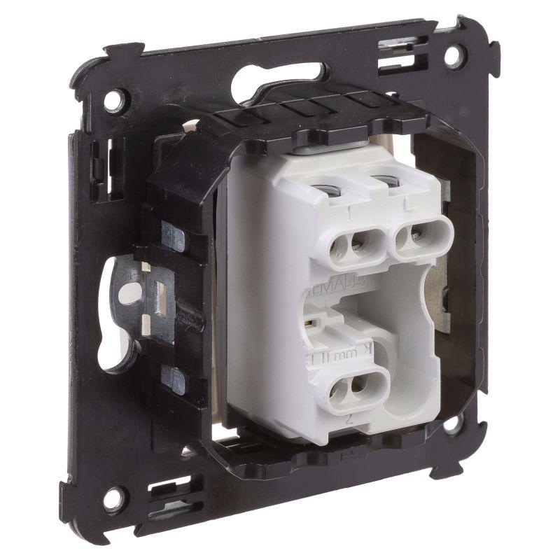 Задача одноклавишного переключателя – управление двумя контурами освещения из одного места. Он позволяет включить/выключить свет из удобной точки – например, в спальне переключатель может размещаться возле кровати. Переключатель предназначен для скрытого монтажа в стену. Номинальное напряжение – 230 В, номинальный ток – 16 А.