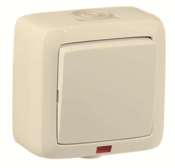Переключатель 1-кл. ОП Альфа 16А с индикацией сл. кость HEGEL ВА16-262-01