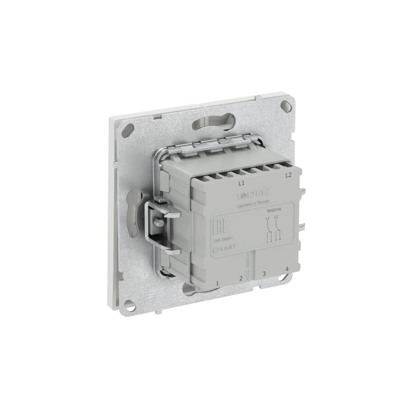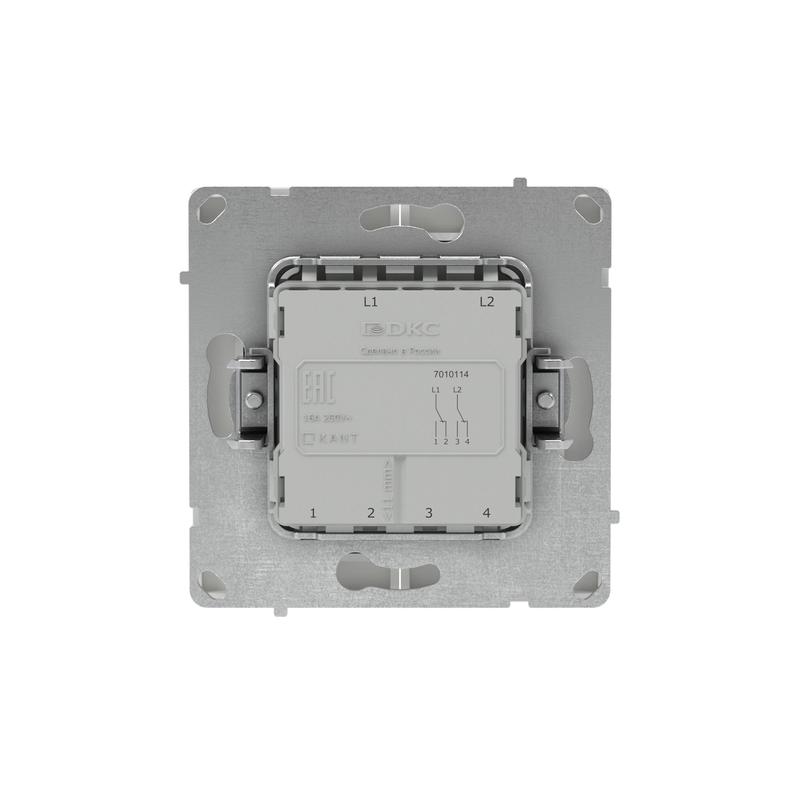 Двухклавишный переключатель применяется для управления двумя контурами освещения из 2 мест. Предназначен для скрытого монтажа в стену. Характеристики устройства: номинальное напряжение 250 В, номинальный ток 16 А. Материал: металл, поликарбонат. Пластиковые элементы устройства имеют цвет "Белый песок". Для декоративного оформления электроустановочных изделий используются рамки серии "KANT".