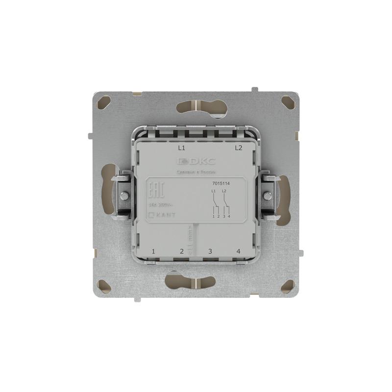 Двухклавишный переключатель применяется для управления двумя контурами освещения из 2 мест. Предназначен для скрытого монтажа в стену. Характеристики устройства: номинальное напряжение 250 В, номинальный ток 16 А. Материал: металл, поликарбонат. Пластиковые элементы имеют цвет "Ванильный марципан". Для декоративного оформления электроустановочных изделий используются рамки серии "KANT".