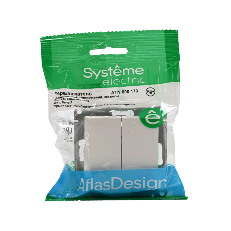 Механизм Systeme Electric (ранее Schneider Electric) серии AtlasDesign в цвете белый переключателя 2-клавишного перекрёстного подходит для сетей 250 В, на ток 10 А. Пластик с ионами серебра обеспечивает антибактериальный эффект. Переключатель позволяет управлять одним источником света с двух точек. Лицевые детали из качественного ABS-пластика, устойчивого к царапинам и УФ-излучению. Усиленные прямые монтажные лапки для лучшей фиксации механизма в монтажной коробке.