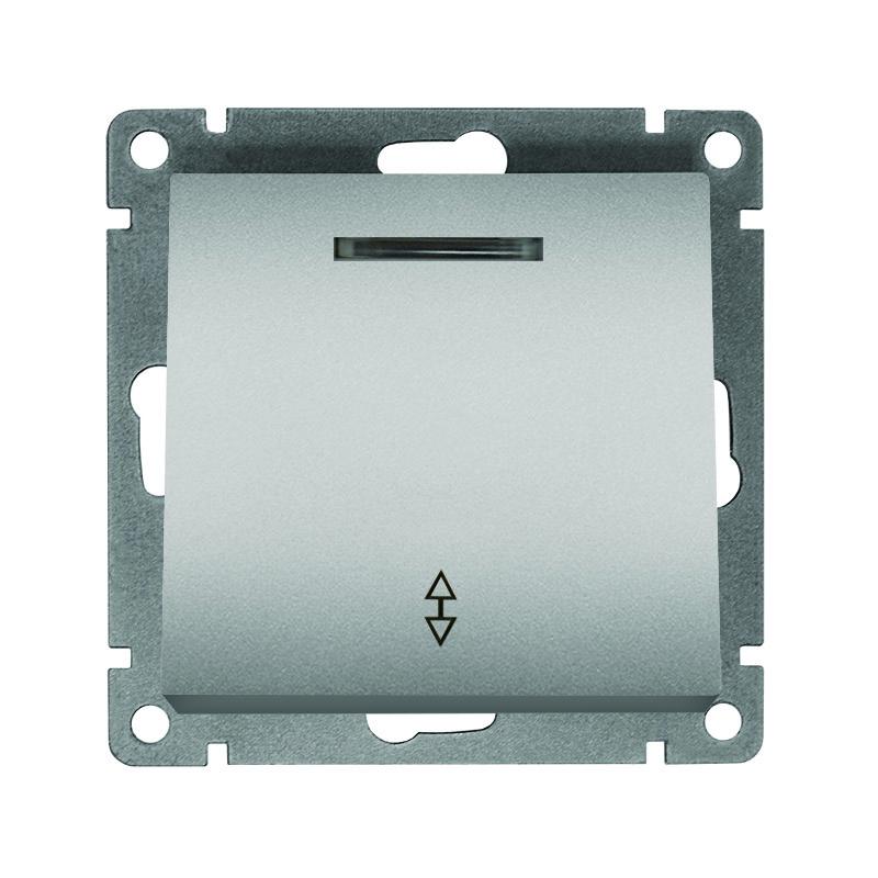 Переключатель проходной 1-кл. СП Афина 10А IP20 с подсветкой механизм серебр. Universal A0125-S