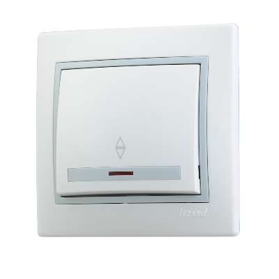Переключатель проходной 1-кл. СП Mira 10А с подсветкой с сер. вставкой бел. LEZARD 701-0215-114