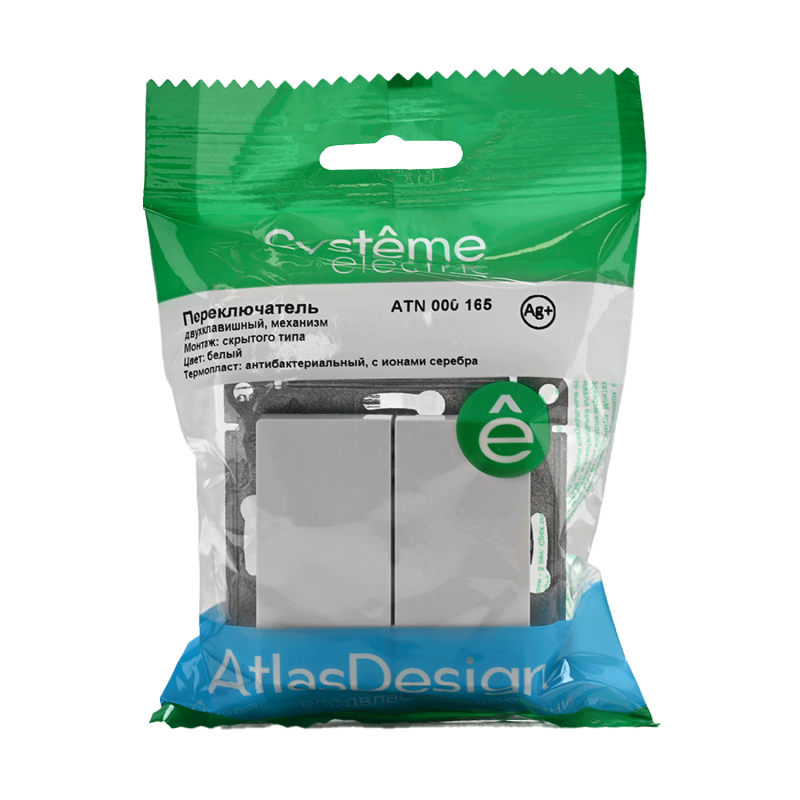 Механизм Systeme Electric (ранее Schneider Electric) серии AtlasDesign в цвете белый переключателя 2-клавишного подходит для сетей 250 В, на ток 10 А. Пластик с ионами серебра в белом цвете обеспечивает антибактериальный эффект. Переключатель позволяет управлять одним источником света с двух точек. Лицевые детали из качественного ABS-пластика, устойчивого к царапинам и УФ-излучению. Усиленные прямые монтажные лапки для лучшей фиксации механизма в монтажной коробке.