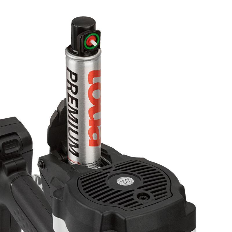 Инструмент обладает силой удара в 95 Дж, что позволяет забивать гвозди длиной от 15 до 40 мм и диаметром от 2,7 до 3,05 мм. Емкость магазина – 30 гвоздей. Одного газового баллона хватает на 1100 гвоздей. Длина баллона без учета пластикового клапана 165 мм.