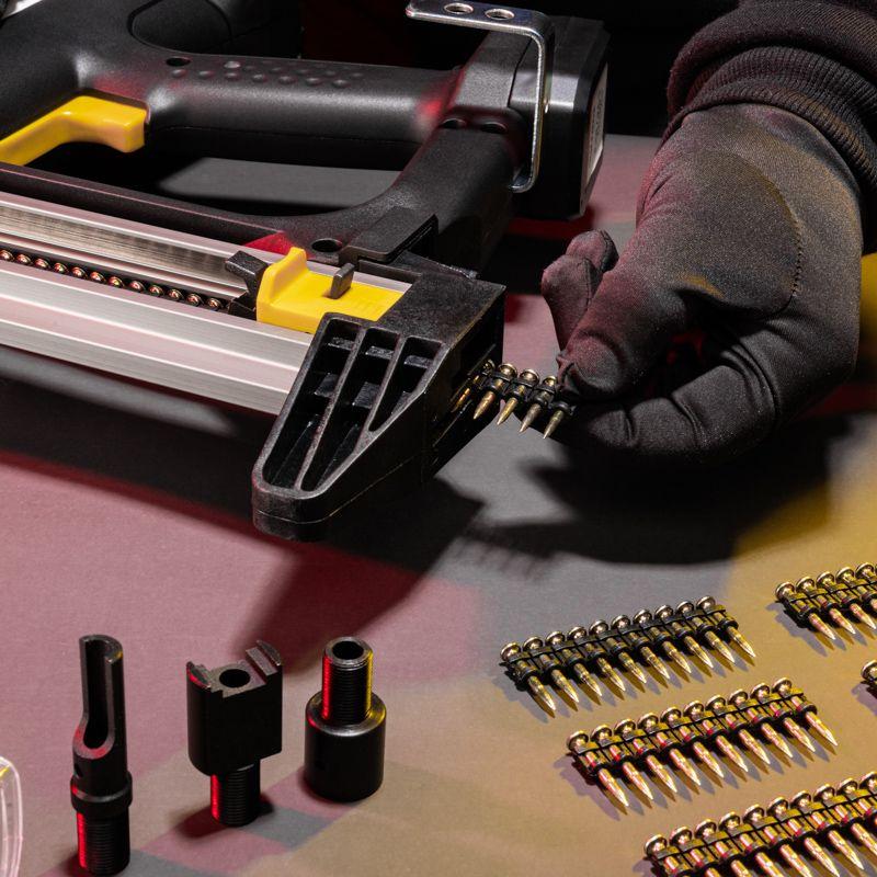 Гвоздезабивной газовый пистолет предназначен для быстрого монтажа крепежных изделий к бетонным поверхностям, кирпичной кладе и изделиям из металлопроката.