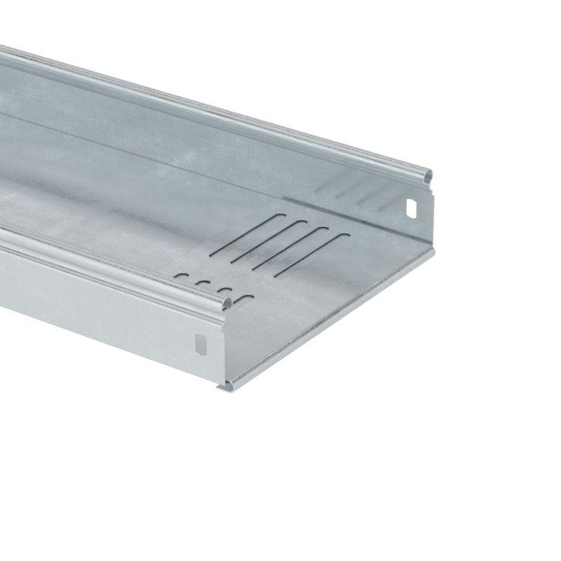 Он крепится к основанию лотка с помощью винтов М6х10 и гаек М6 с насечкой. Исполнение – "сталь, оцинкованная по методу Сендзимира", высота стенки – 75 мм. Аксессуар предназначен для лотков шириной 100 мм.