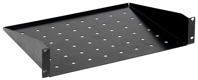Консольные полки рассчитаны на размещение небольшого по габаритам и общей массе оборудования. Конструкция данных полок рассчитана на крепление полки только на одной паре монтажных профилей, спереди или сзади, и может быть как с перфорацией для лучшего охлаждения и отведения горячего воздуха, так и без нее.