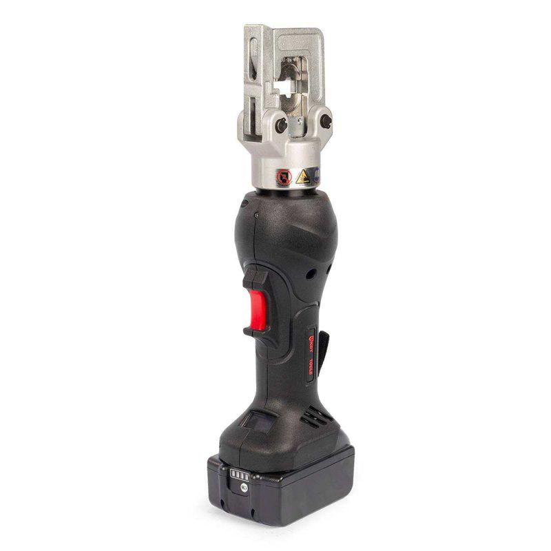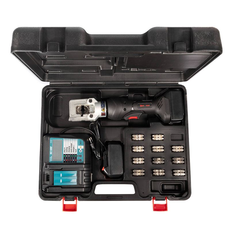 • Компактный 5-тонный аккумуляторный пресс с гидравлическим приводом для опрессовки медных и алюминиевых наконечников. Инновационный корпус с плавными обтекаемыми линиями и прорезиненными вставками