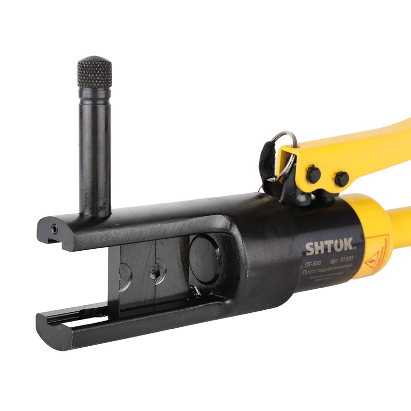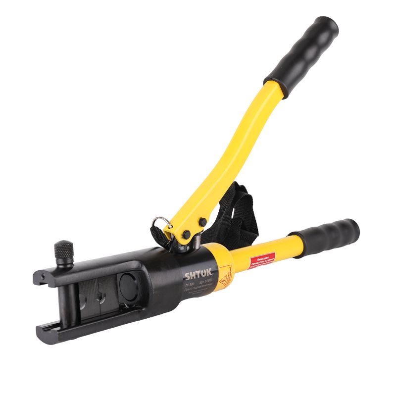 Ручной гидравлический пресс SHTOK ПГ-300 01001 предназначен для опрессовки медных и алюминиевых наконечников сечением от 10 до 300 мм2.