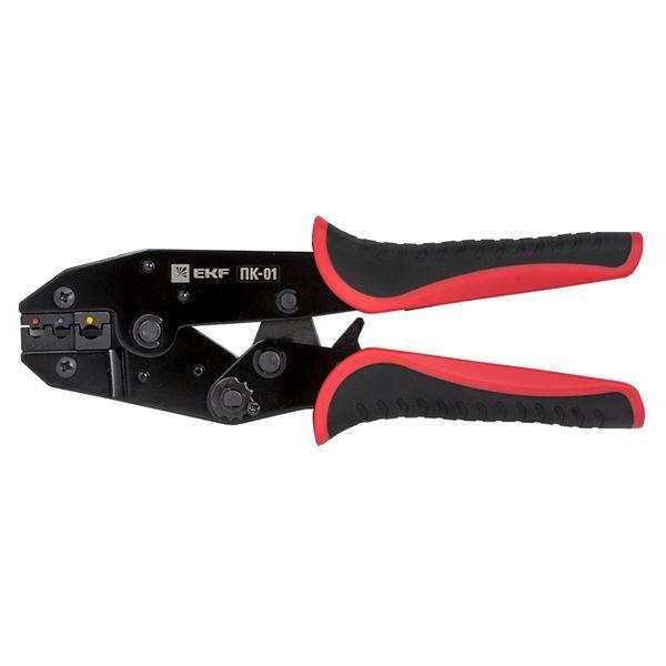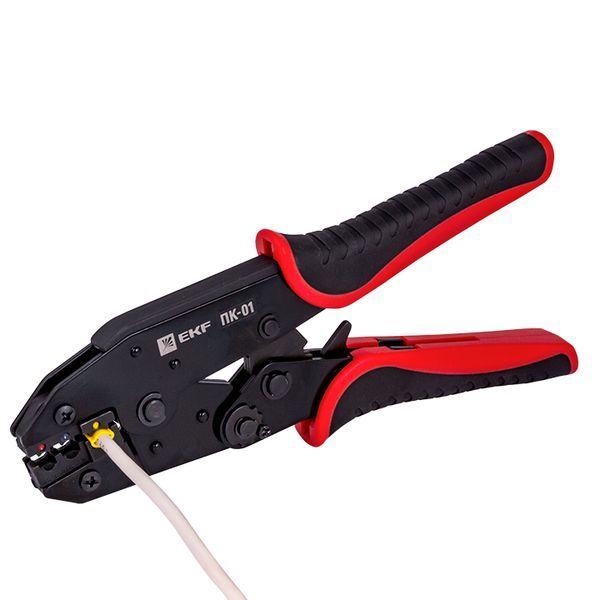 Пресс-клещи pk-01-exp предназначены для НКИ, НВИ наконечников сечением 0,5-6 мм2. Инструмент оснащен храповым механизмом с автоматической разблокировкой по завершению цикла опрессовки. Каждая модель имеет маркировку, указывающую значение сечения используемого наконечника или разъема, а также нанесенную цветовую маркировку, соответствующую цвету изолирующей манжеты. Профиль опрессовки - овал.