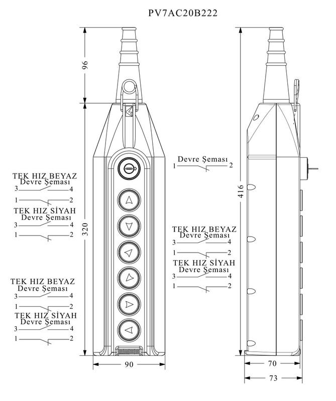 Пульт управления 7 кнопок (первая кнопка ключ-марка CP200AC20, 1НЗ), односкоростной, cерия PV (250В AC, 4А), IP65