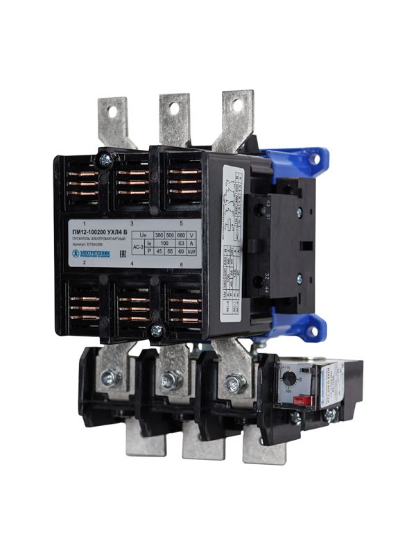 Пускатель ПМ 12-100200 УХЛ4 В 100А кат. 380В AC 2НО+2НЗ IP00 с реле РТТ-325 85-115А Электротехник ET504289