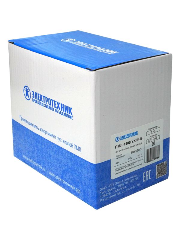 Пускатель ПМЛ-4100 УХЛ4 Б 63А кат. 380В AC 1НО+1НЗ IP20 без реле Электротехник ET511494