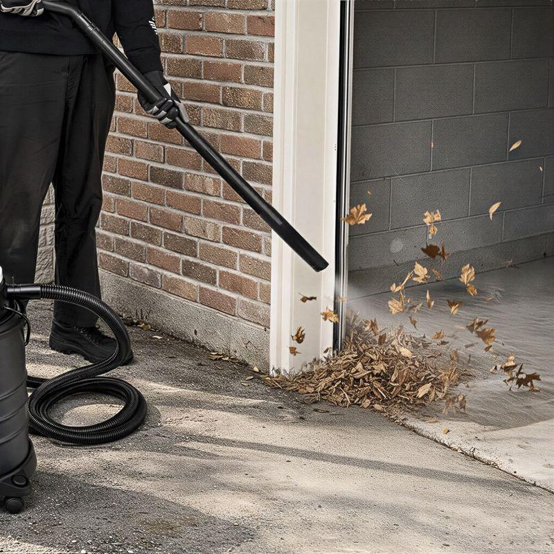 Сливная пробка быстро удаляет жидкость из бака. Увеличенный шланг длиной 4 м упрощает уборку больших площадей. Поворотные колеса и ручка для переноски облегчают перемещение пылесоса по объекту.