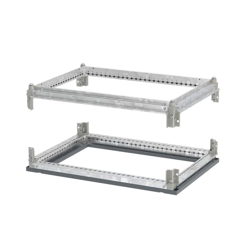 Комплект оцинкованной рамы крыши и дна для соединения с вертикальными стойками и сборки напольных шкафов CQE N шириной 1000 и глубиной 800 мм. Юбка дна окрашена в цвет RAL 7011.
