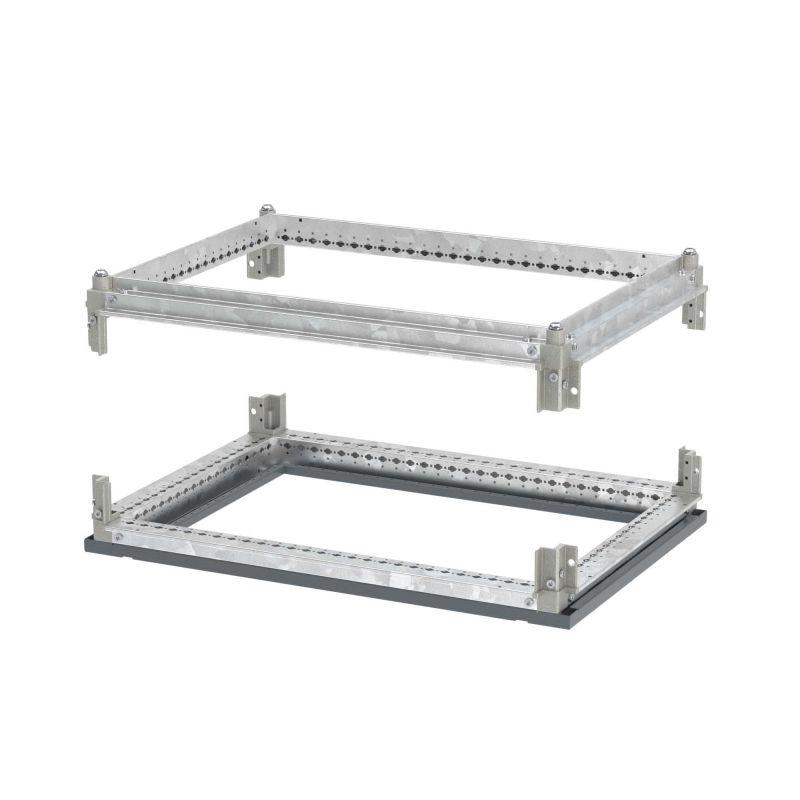 Комплект оцинкованной рамы крыши и дна для соединения с вертикальными стойками и сборки напольных шкафов CQE N шириной 600 и глубиной 800 мм. Юбка дна окрашена в цвет RAL 7011.
