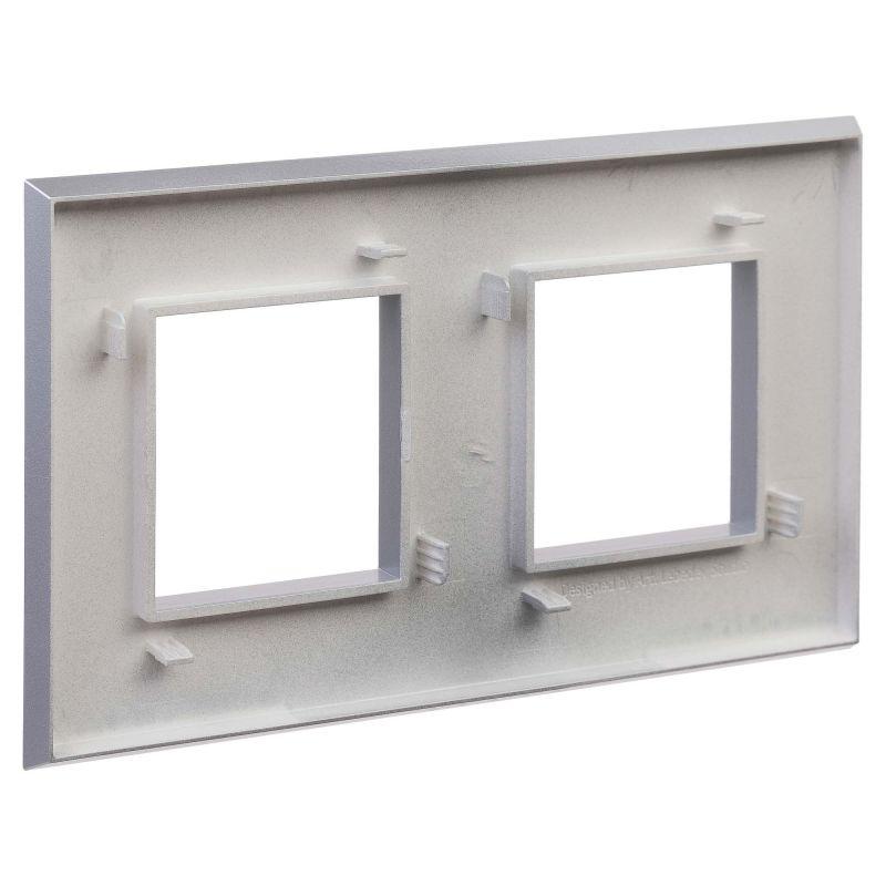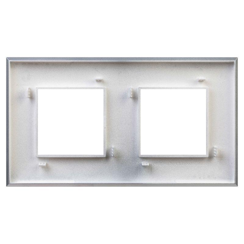 В рамке предусмотрено 2 поста под ЭУИ (максимум 4 модуля). При этом рамка может быть размещена как горизонтально, так и вертикально. Габаритные размеры: 160х90 мм. Материал – термопласт.