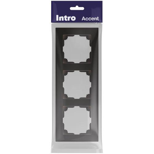Рамка для розеток и выключателей 3-постовая универсальная пластик серии Intro Accent цвет антрацит 6-503-05. Рамка выполнена из термопласта. Устанавливается на 3 устройства серии Intro Accent, смонтированных в подрозетники.