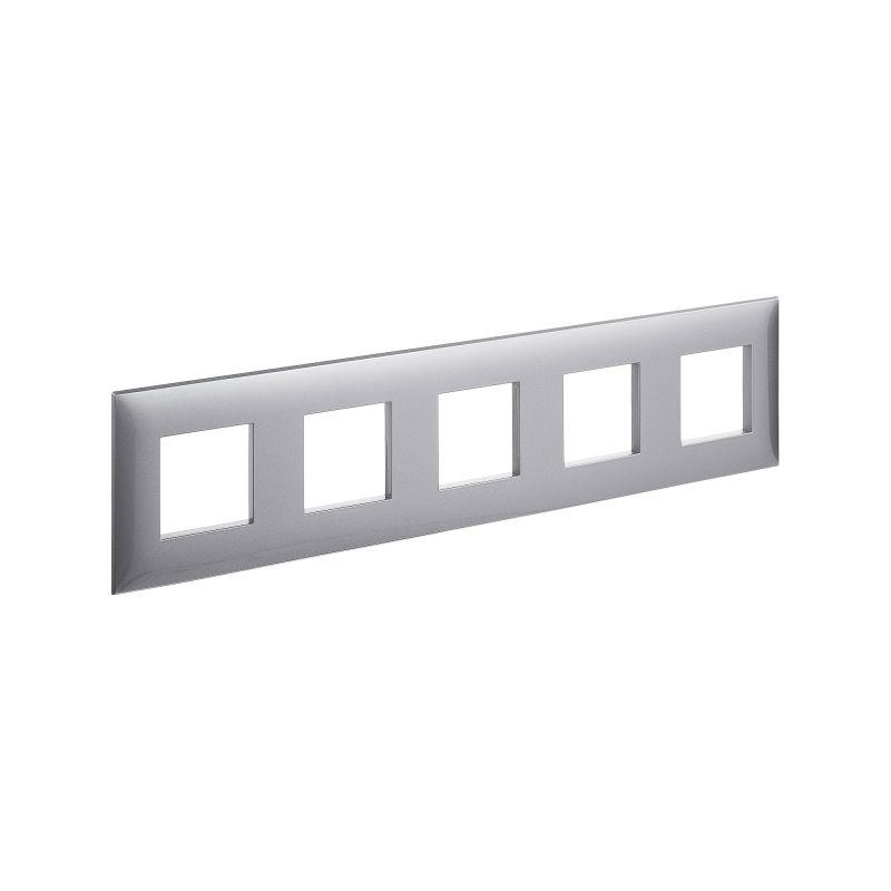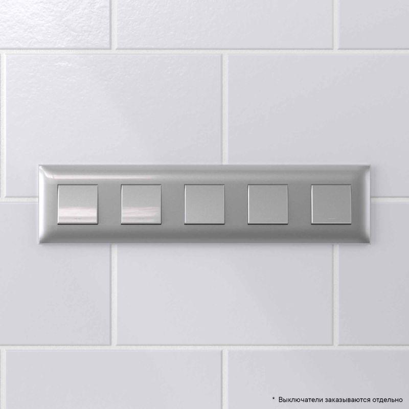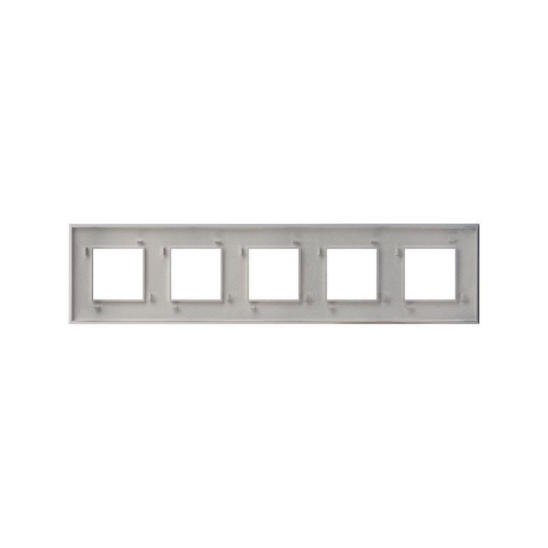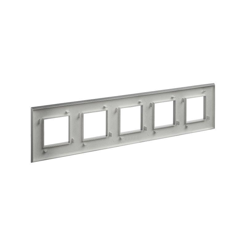 В рамке предусмотрено 5 постов под ЭУИ (максимум 10 модулей). При этом рамка может быть размещена как горизонтально, так и вертикально. Габаритные размеры: 375х90 мм. Материал – термопласт.