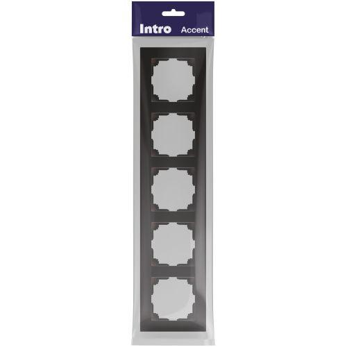Рамка для розеток и выключателей 5-постовая универсальная пластик серии Intro Accent цвет антрацит 6-505-05. Рамка выполнена из термопласта. Устанавливается на 5 устройств серии Intro Accent, смонтированных в подрозетники.
