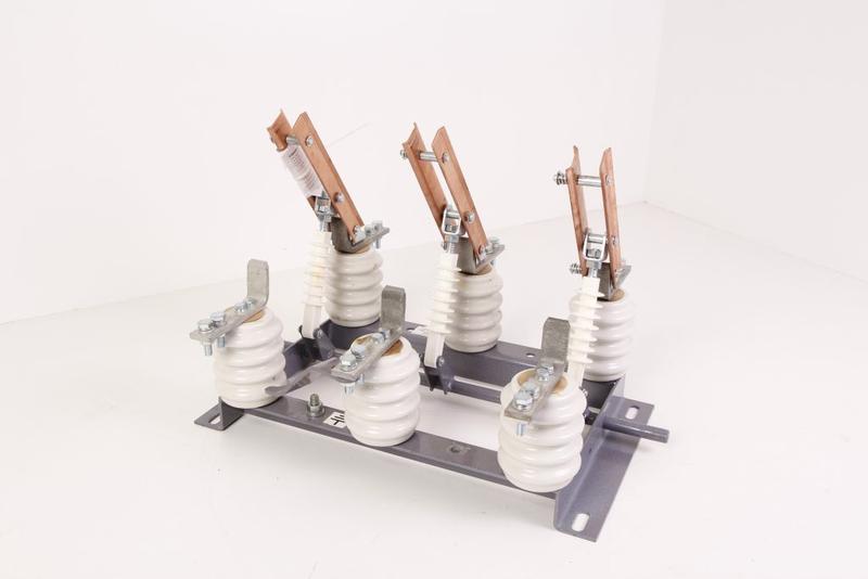 Разъединитель представляет собой 3 токопровода, которые установлены на одной раме с общим валом и приводным рычагом. С помощью привода вращается вал и происходит включение либо отключение контактных ножей.