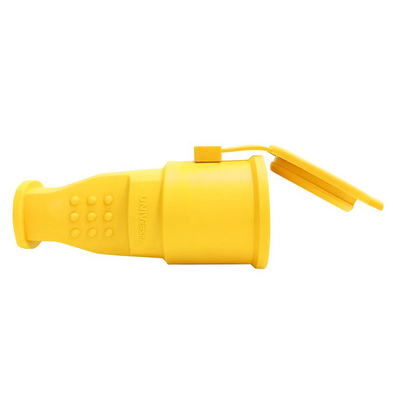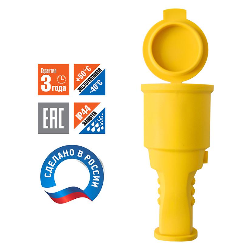 Разъем штепсельный 16А IP44 250В (еврослот) с заземл. каучук желт. Universal 3088