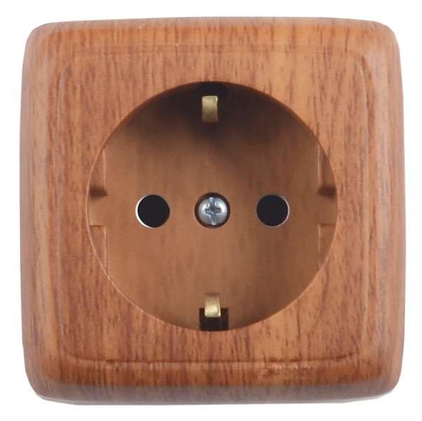 Розетка 1-м ОП Альфа 16А IP20 250В с заземл. защ. шторки с изолир. пластиной дуб HEGEL РА16-114-05