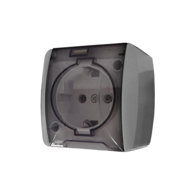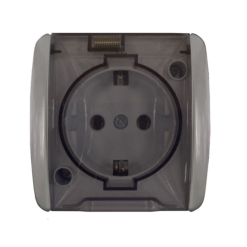 Розетка 1-м ОП Клио 16А IP54 с заземл. с прозр. крышкой сер. UNIVersal К2229-Gr