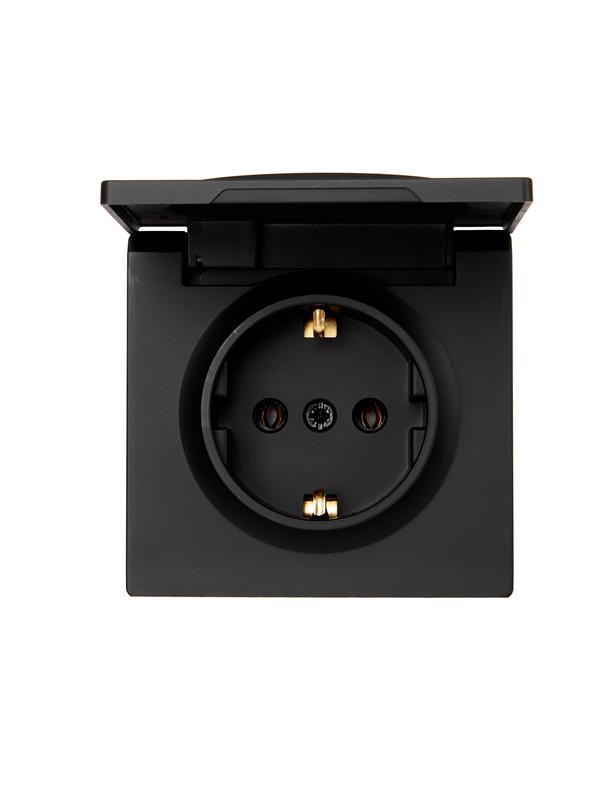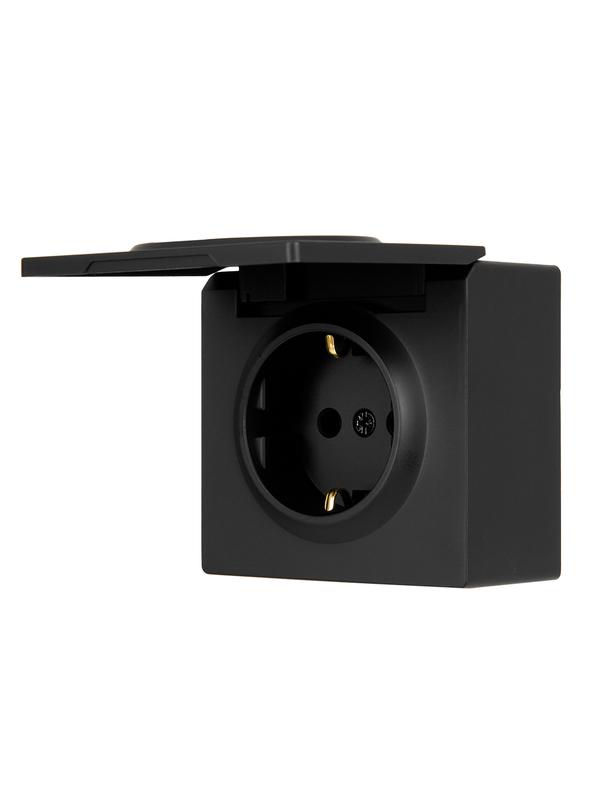 Розетка 1-м ОП LETO с заземл. с крышкой LETO ПБТ черн. бархат LEZARD 752-4200-123B