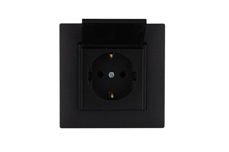 Розетка 1-м с крышкой Karea RIZZ STAR с заземл. чер. Makel 88054029