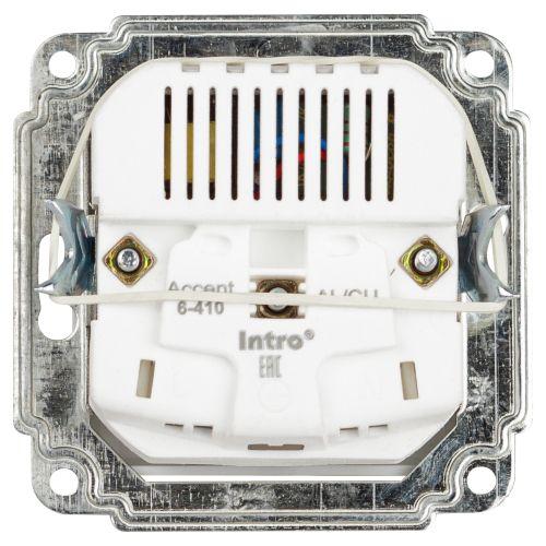 Розетка с USB с заземлением со шторками серии Intro Accent скрытой установки механизм цвет белый 6-410-01. Номинальные характеристики 16А 250В / 2,1А 5В. Выполнена из негорючего термопласта. Монтаж в подрозетник производится и на лапки, и на винты. Рамка приобретается отдельно. В серии представлены рамки до 5 постов: на 1 пост - 6-501-хх, на 2 поста - 6-502-хх, на 3 поста - 6-503-хх, на 6 поста - 4-504-хх, на 5 постов - 6-505-хх (где хх - цветовой код: 01 - белый, 01М - матовый белый, 02 - слоновая кость, 03 - алюминий, 04 - шампань, 05 - антрацит, 06 - перламутр, 07 - графит, 08 - бронза, 09 - титан, 10 - венге, 11 - сосна)