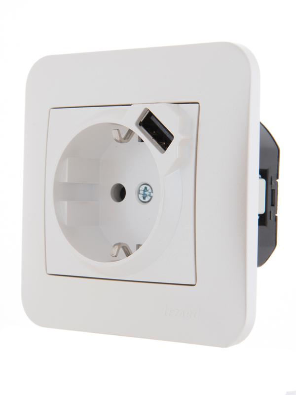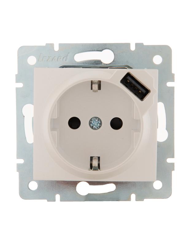 Розетка 1-м СП Karina 16А с заземл. с заряд. устройством USB механизм жемчуж./бел. перламутр. LEZARD 707-3088-181