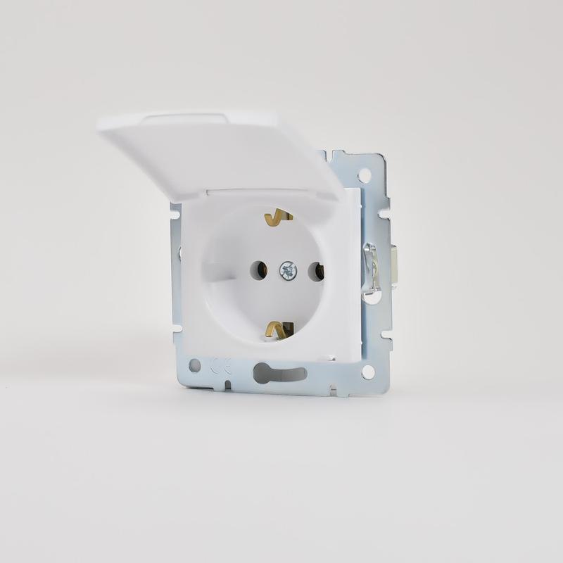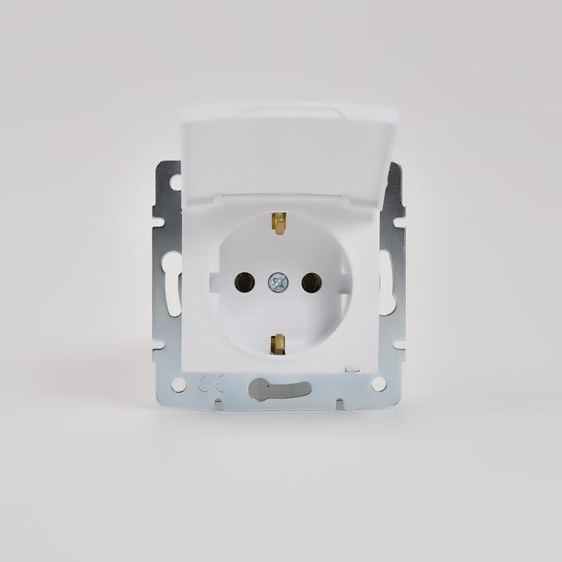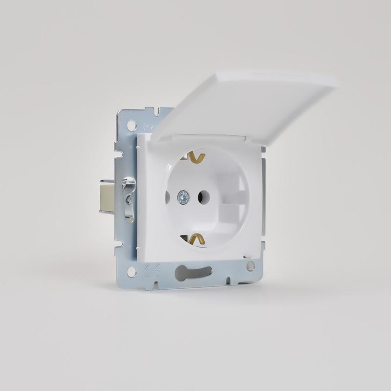 Розетка 1-м СП Karina с заземл. с крышкой термопласт механизм бел. LEZARD 707-0288-123B
