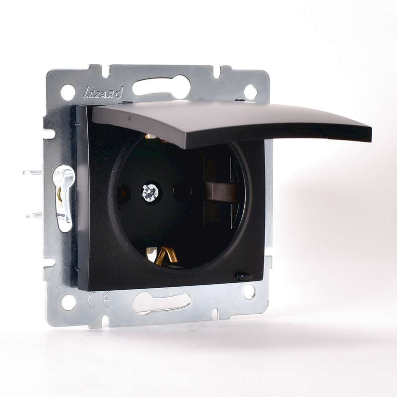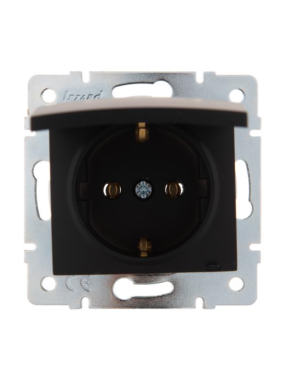 Розетка 1-м СП Karina с заземл. с крышкой термопласт механизм черн. бархат LEZARD 707-4288-123B