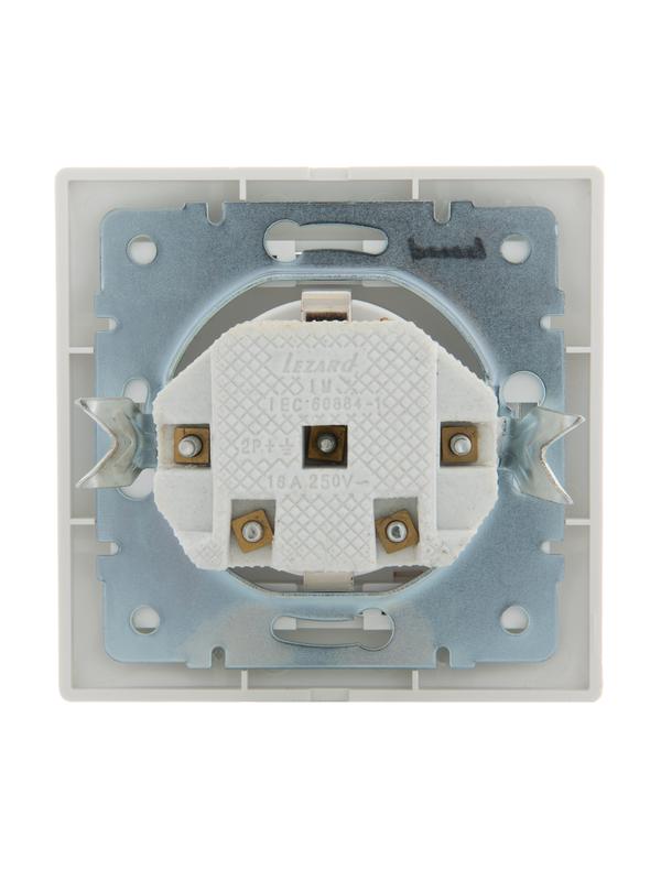 Розетка 1-м СП Мира керам. с заземл. с защ. крышкой бел./сер. Lezard 701-0215-123 представляет собой электроустановочный механизм одноместной розетки.