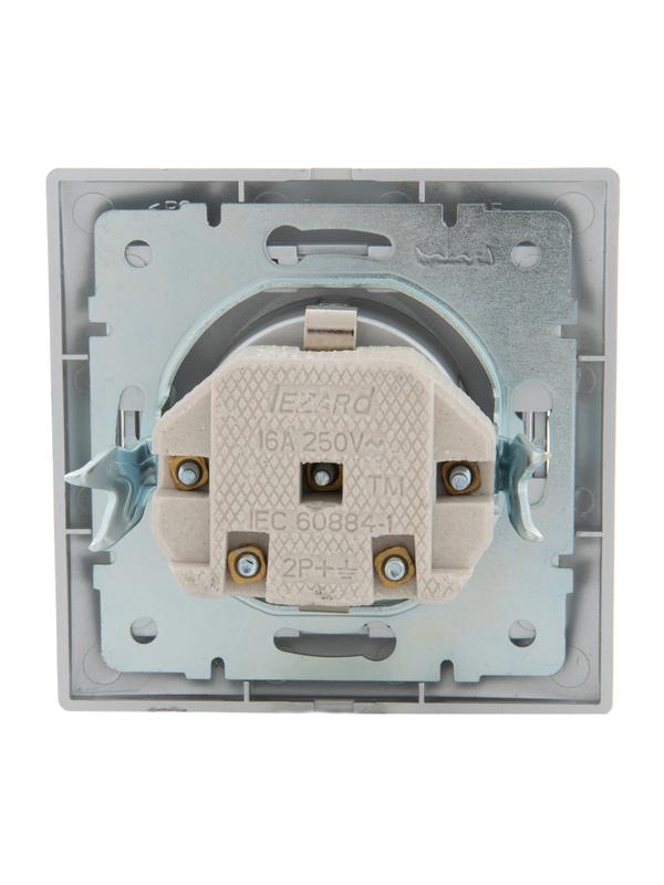 Розетка 1-м СП Мира с защ. крышкой керам. с заземл. метал. сер. Lezard 701-1010-123 представляет собой электроустановочный механизм одноместной розетки.