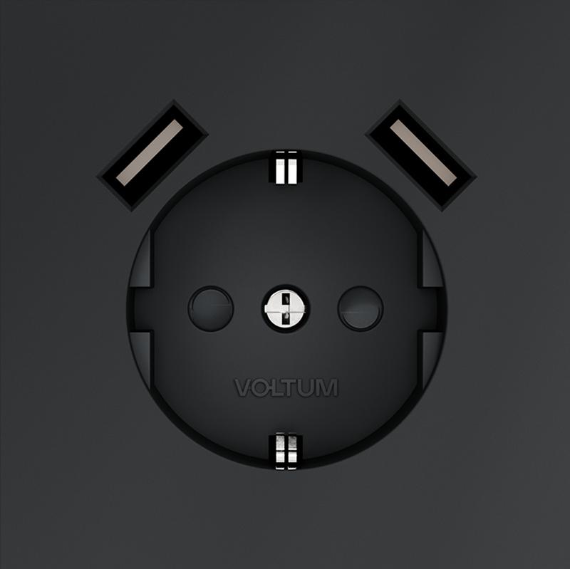 Розетка 1-м СП S70 16А с USB A+A с заземл. защ. шторки механизм графит Voltum VLS040407