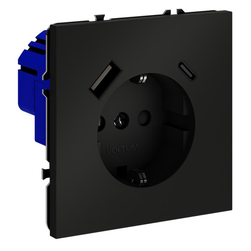 Розетка 1-м СП S70 16А с USB A+С с заземл. защ. шторки механизм черн. матов. Voltum VLS040508