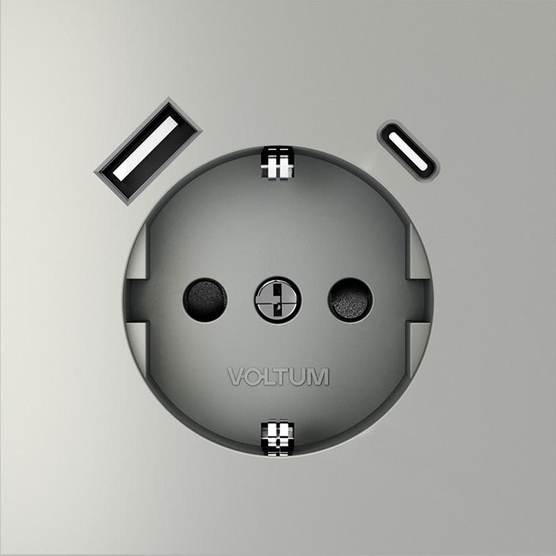 Розетка 1-м СП S70 16А с USB A+С с заземл. защ. шторки механизм сталь Voltum VLS040505