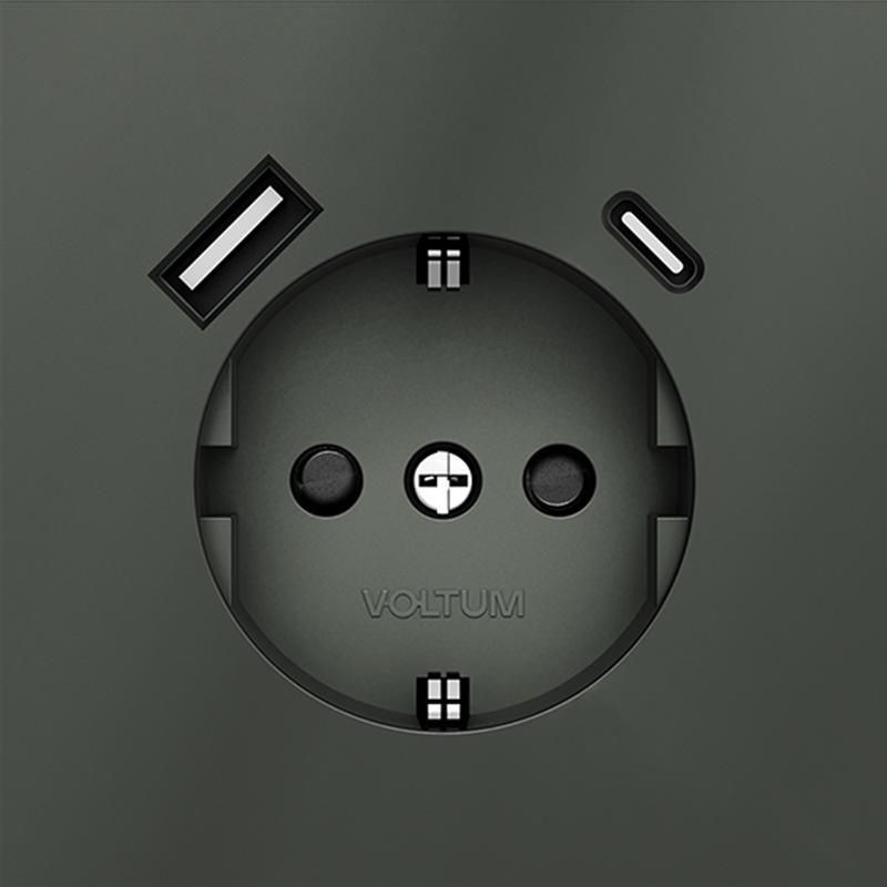 Розетка 1-м СП S70 16А с USB A+С с заземл. защ. шторки механизм титан Voltum VLS040506