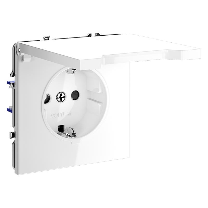 Розетка 1-м СП S70 16А с заземл. защ. шторки + крышка механизм бел. глянцевый Voltum VLS040301