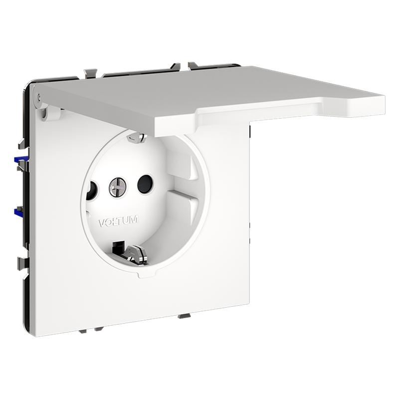 Розетка 1-м СП S70 16А с заземл. защ. шторки + крышка механизм бел. матов. Voltum VLS040302