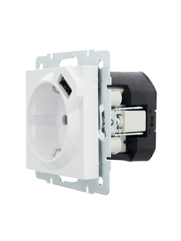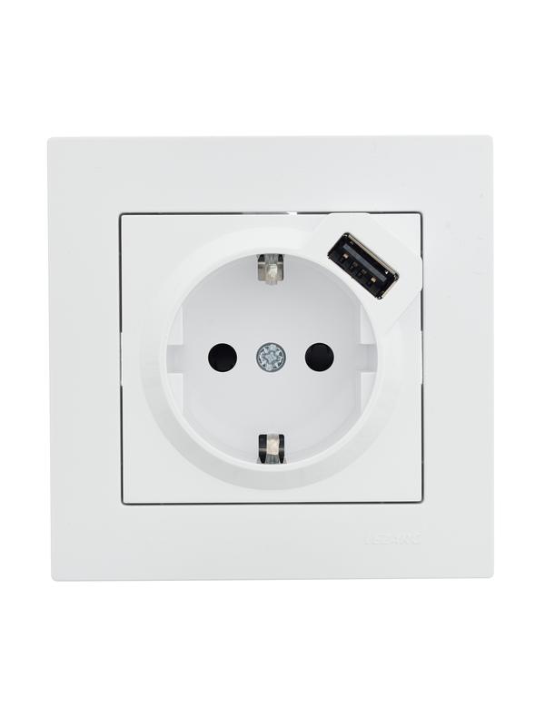 Розетка 1-м СП Vesna с заземл. с заряд. устройством USB механизм бел. LEZARD 742-0288-181