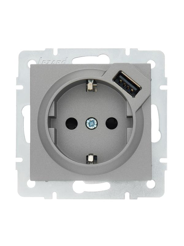 Розетка 1-м СП Vesna с заземл. с заряд. устройством USB механизм платина LEZARD 742-3588-181