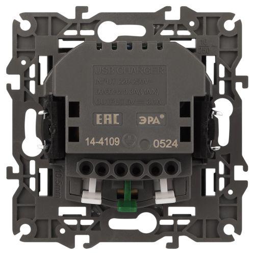 Розетка с USB серии Эра Elegance цвет антрацит 14-4109-05. Номинальные характеристики . Оснащёна автоматическими клеммами для надёжной фиксации жил кабеля в механизме. Рамки приобретаются отдельно. Рамки Эра Elegance ПЛАСТИК: 1 пост 14-5001-хх, 2 поста 14-5002-хх, 3 поста 14-5003-хх, 4 поста 14-5004-хх, 5 постов 14-5005-хх; СТЕКЛО: 1 пост 14-5101-хх, 2 поста 14-5102-хх, 3 поста 14-5103-хх, 4 поста 14-5104-хх; МЕТАЛЛ: 1 пост 14-5201-хх, 2 поста 14-5202-хх, 3 поста 14-5203-хх, 4 поста 14-5204-хх; ДЕРЕВО: 1 пост 14-5301-хх, 2 поста 14-5302-хх, 3 поста 14-5303-хх, 4 поста 14-5304-хх (хх - код цвета: 00-прозрачный, 01-белый, белёный дуб, 02-слоновая кость, 03-алюминий, 04-шампань, 05-чёрный, чёрное дерево, 07-ясень, 09-дуб, 10-венге, 11-клён, 14-медь, 21-жёлтый, 22-оранжевый, 23-красный, 25-бордо, 26-лайм, 27-зелёный, 28-голубой, 29-синий, 30-розовый, 31-мокко, 32-серый, 41-сталь, 42-титан).