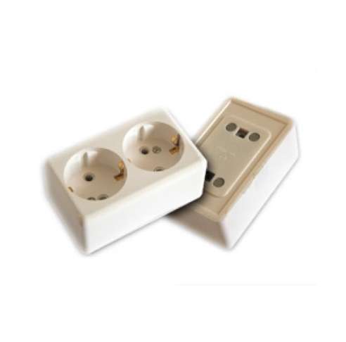 Розетка 2-м ОП 16А IP20 с заземл. с монтаж. панелью бел. БЕЛТИЗ РА 16-017
