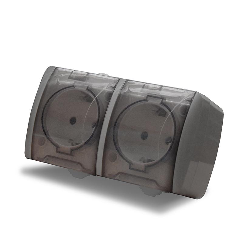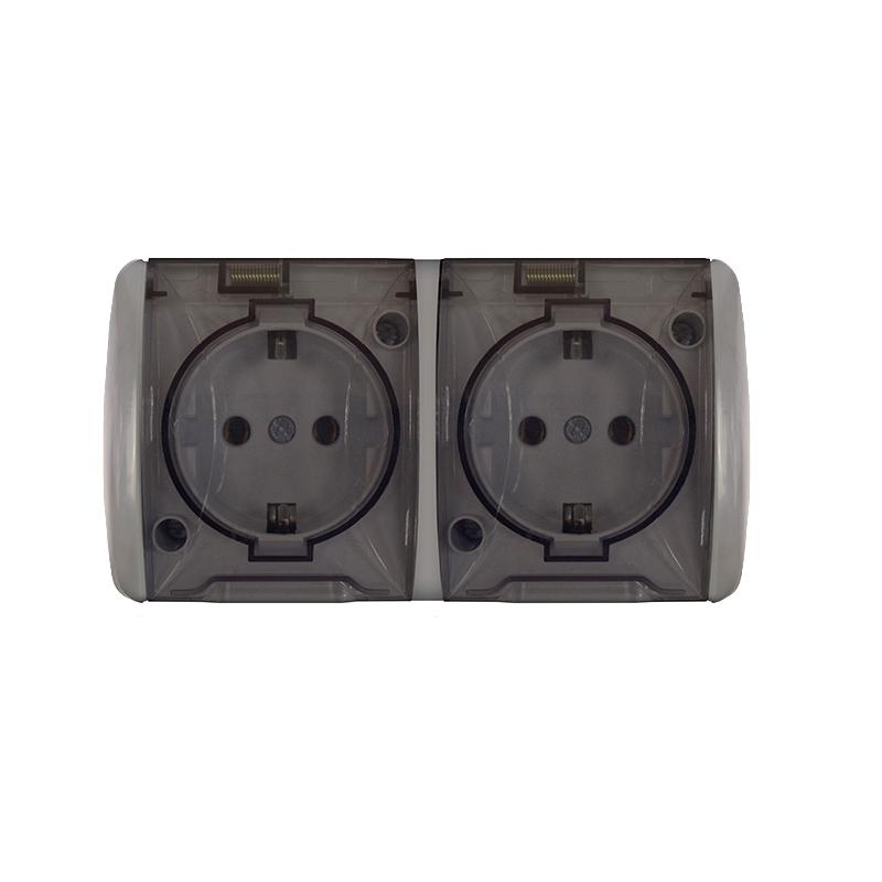 Розетка 2-м ОП Клио 16А IP54 с заземл. с прозр. крышкой сер. UNIVersal К2232-Gr