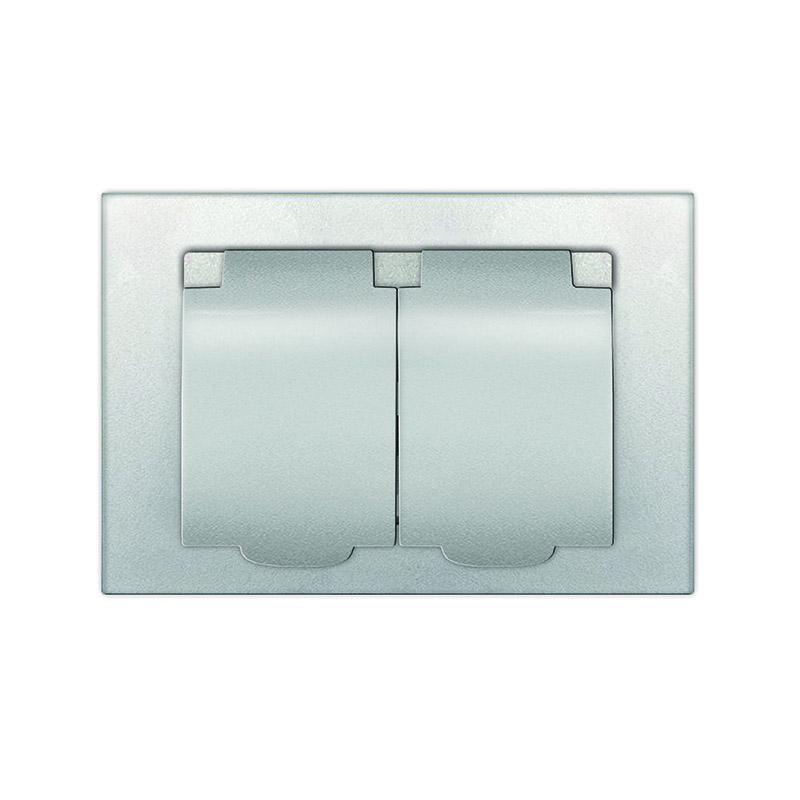 Розетка 2-м СП Афина 16А IP20 с заземл. c крышкой в сборе серебр. Universal A0031-S